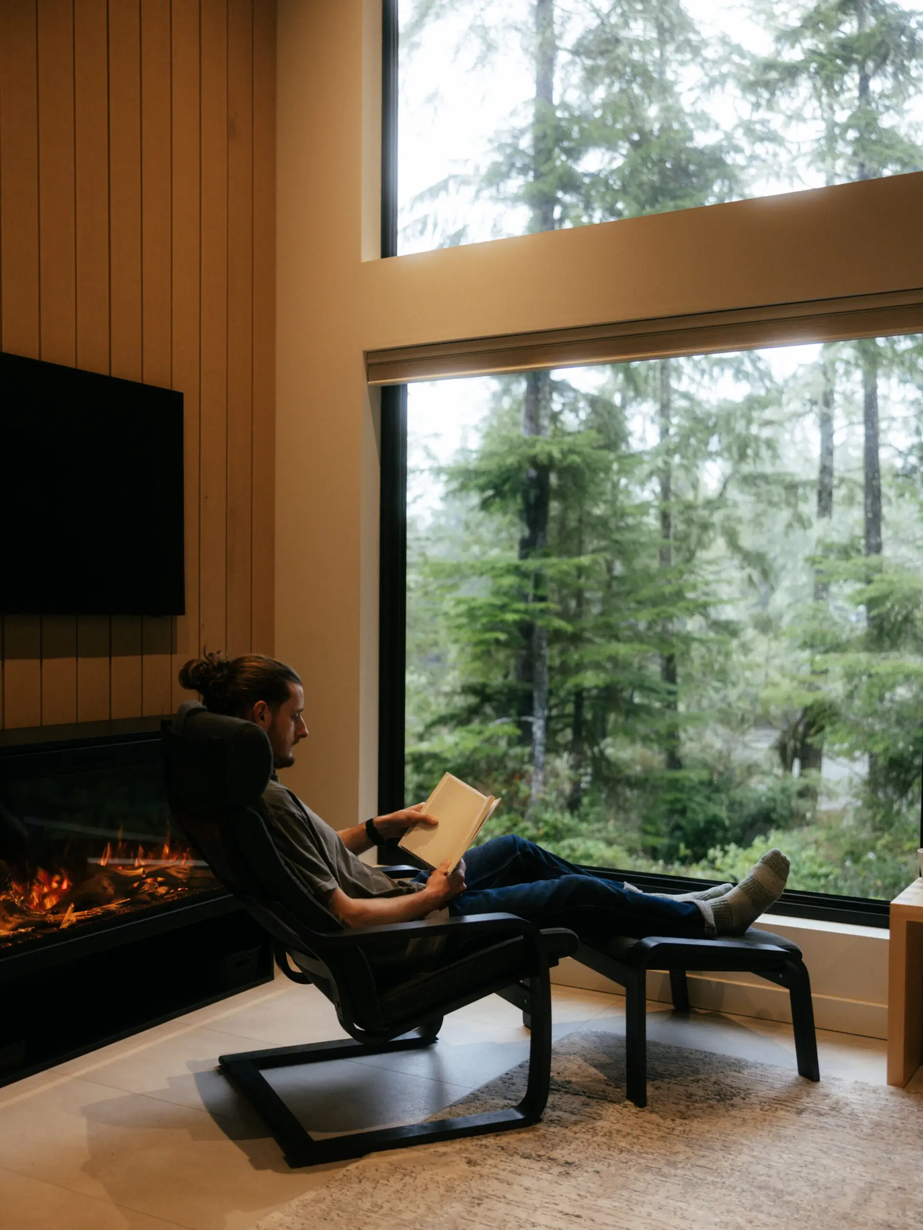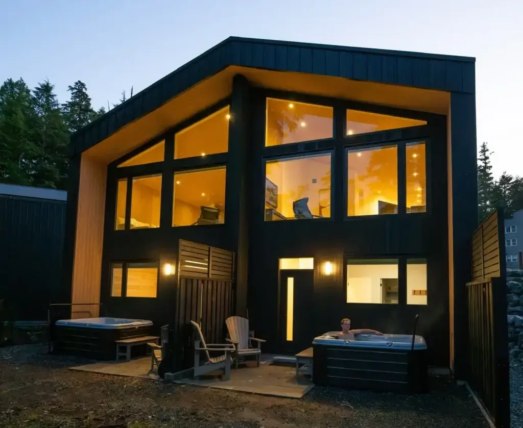 Calmwater Retreat is designed to feel easy and comfortable from the moment you arrive. Each cabin features in-suite laundry, heated bathroom floors, private hot tubs, BBQs, and dedicated parking with EV charging.